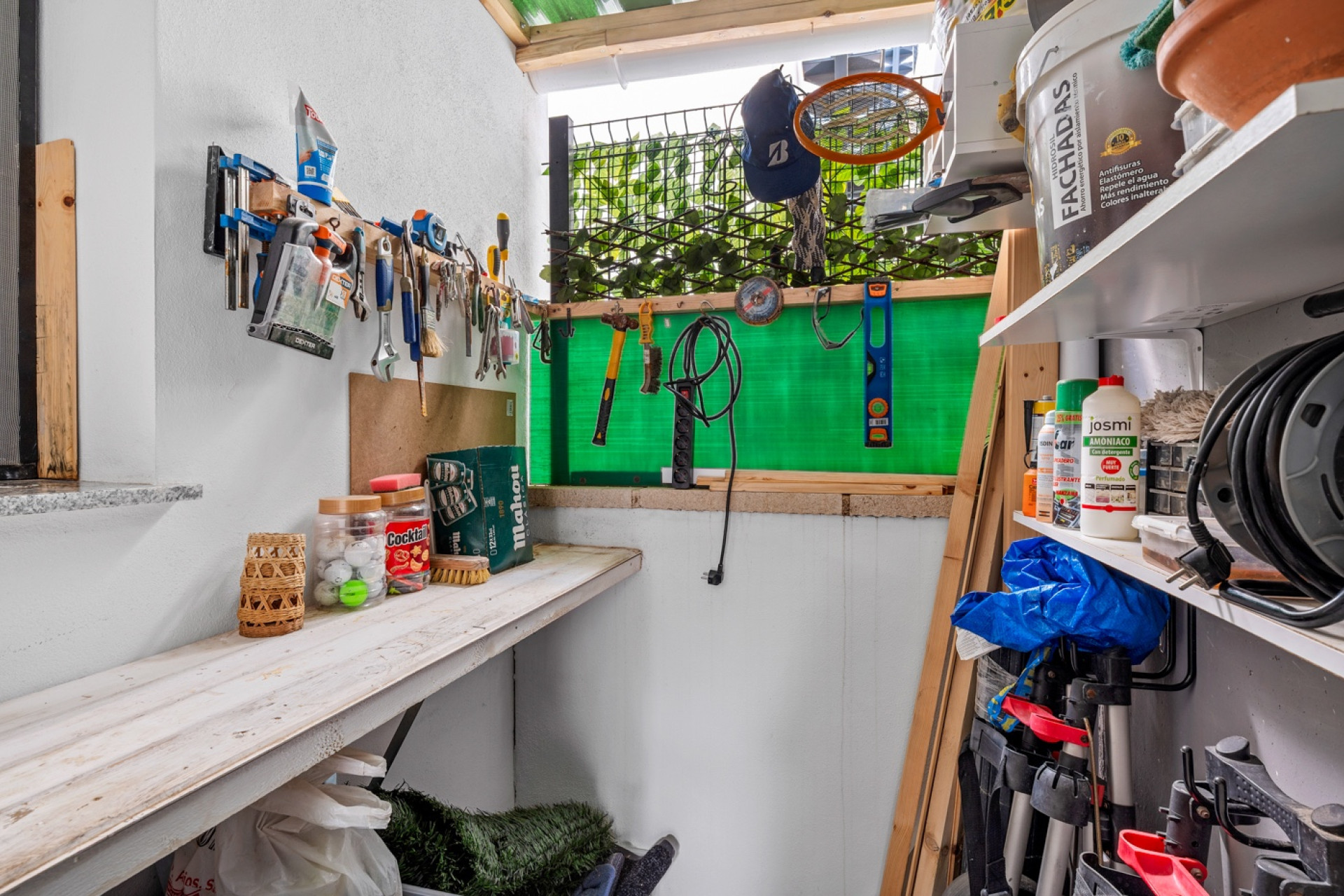 Außerdem gibt es einen Hauswirtschaftsbereich mit Werkbank sowie einen zusätzlichen Abstellraum. Mehrere Markisen sorgen während der warmen Sommermonate für angenehmen Schatten.
