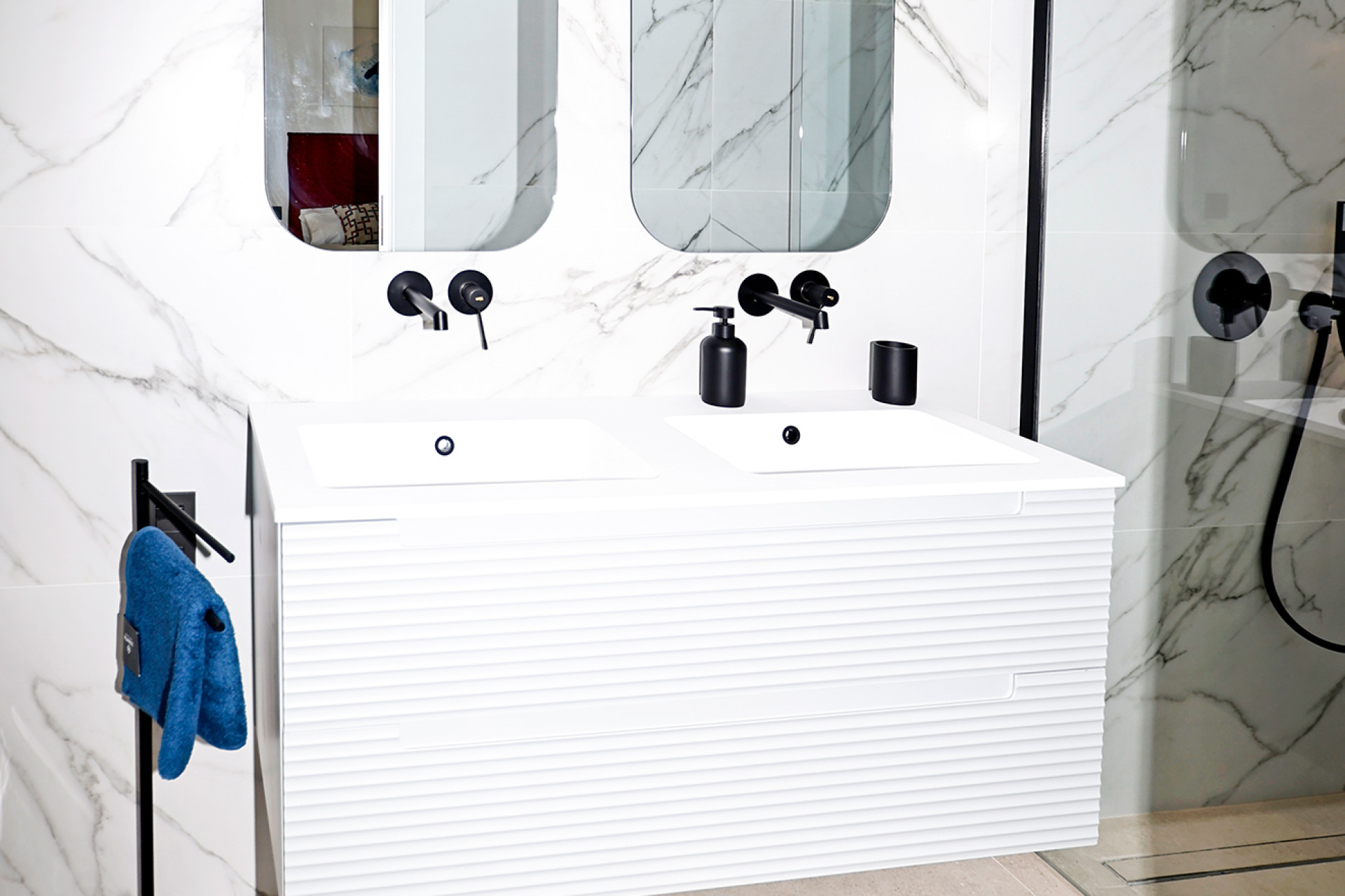 Das Innere jeder Wohnung spiegelt einen Fokus auf Qualität und Funktionalität wider. Die Böden aus Keramik und Feinsteinzeug verleihen Eleganz und Langlebigkeit, während die Klimaanlage und die elektrischen Rollläden ganzjährig Komfort garantieren. Die Küchen sind komplett mit Geräten ausgestattet, was den Alltag erleichtert. Darüber hinaus bieten die Einbauschränke effizienten Stauraum, und die Vorinstallation der Klimaanlage ermöglicht eine weitere Anpassung jedes Raumes an die Vorlieben des Eigentümers.
