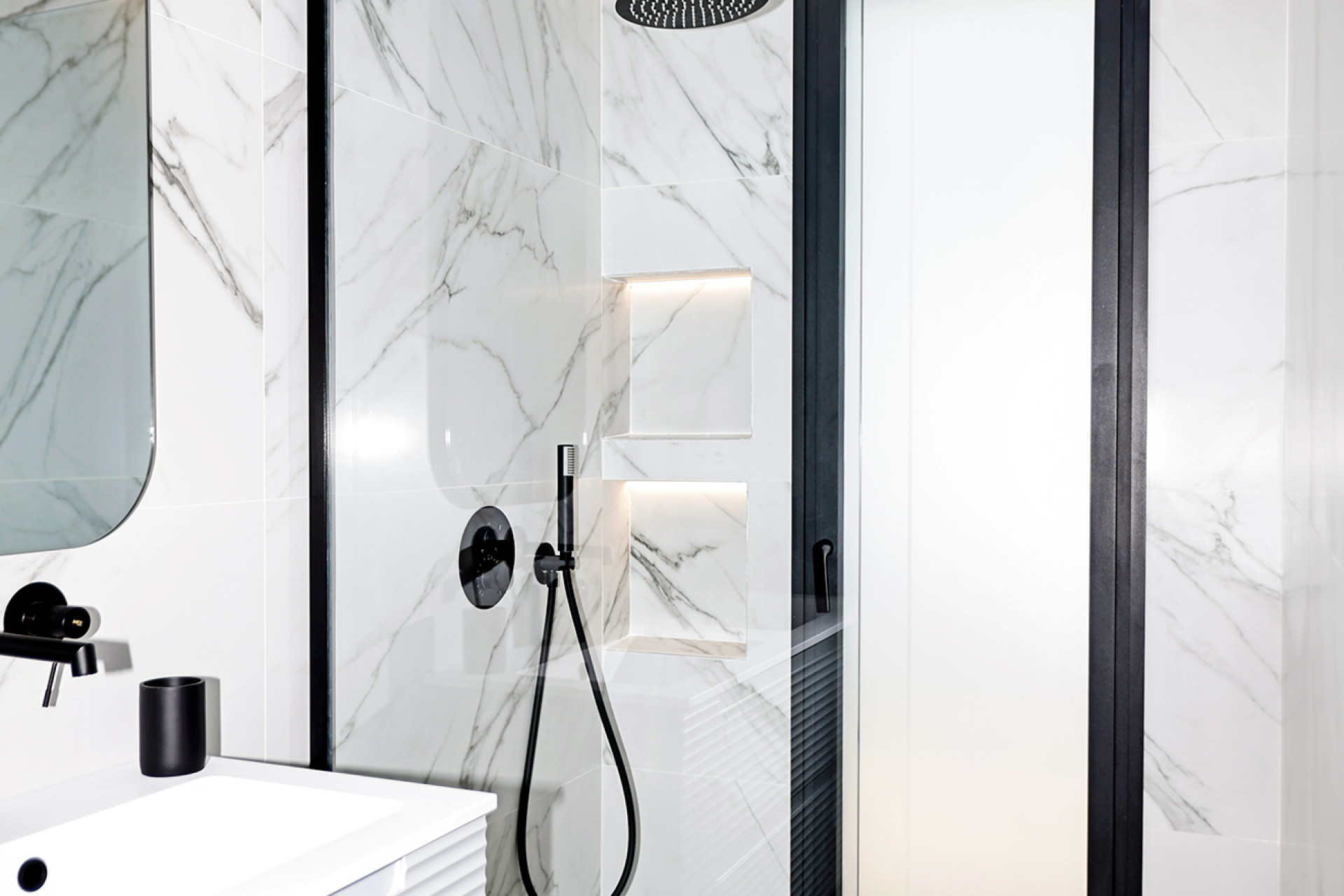 Het interieur van elke woning weerspiegelt een focus op kwaliteit en functionaliteit. De keramische en porseleinen vloeren geven een vleugje elegantie en duurzaamheid, terwijl de airconditioning en elektrische rolluiken het hele jaar door comfort garanderen. De keukens zijn volledig uitgerust met apparaten, wat het dagelijks leven vergemakkelijkt. Bovendien bieden de inbouwkasten efficiënte opslag, en de voorbereidende installatie van airconditioning maakt het mogelijk om elke ruimte verder aan te passen aan de voorkeuren van de eigenaar.