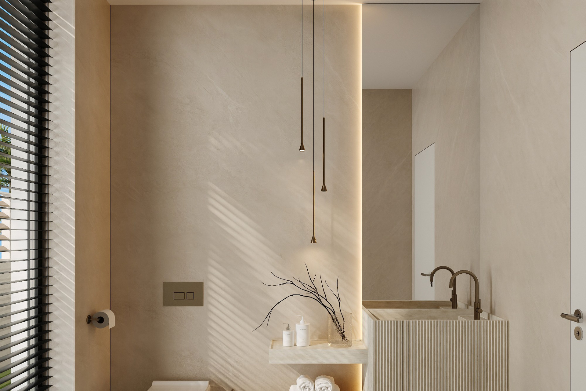 Inside, the villas are equipped with all modern amenities. Porcelain tile floors add a touch of elegance and durability. The properties are fully furnished and feature high-end appliances. Air conditioning and underfloor heating ensure comfort year-round. Built-in wardrobes offer ample storage space, while the open design of common areas maximizes natural light and a sense of spaciousness.